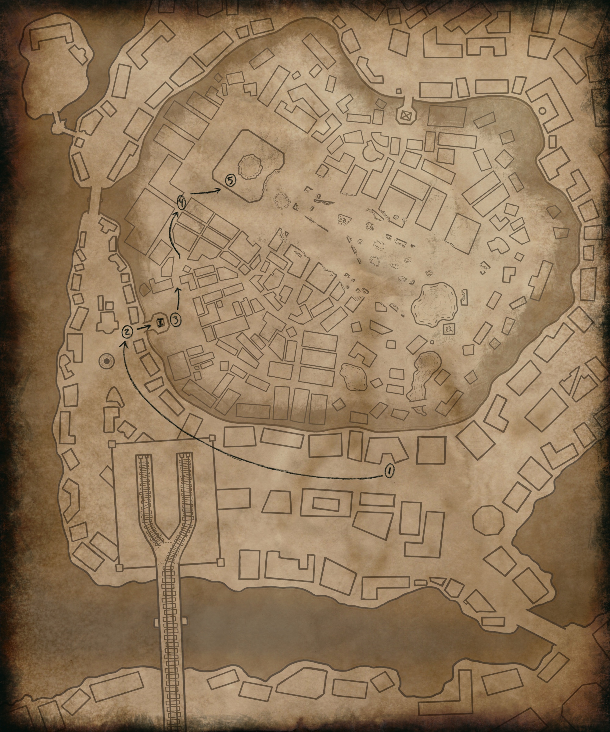 When everyone enters, the room is occupied by two men: The Ragged Prince, overlooking maps of the city, and a formally (but out of date) suited man standing at a remove staring north. Once brief small talk is made, The Ragged Prince introduces the other man as Albrecht and invites him to speak. Albrecht talks with a pronounced Tuetarch accent, and stops often to cough wetly into a kerchief. He mentions that the Holy Empire will be moving valuable artifacts “from his people” at the museum and he wishes them to be stolen and returned. For this, he is willing to pay an exorbitant sum of $250,000 per person. This group will be responsible for breaking into the museum, finding the artifacts, removing them, and passing them off to a different team which will get them out of the city.