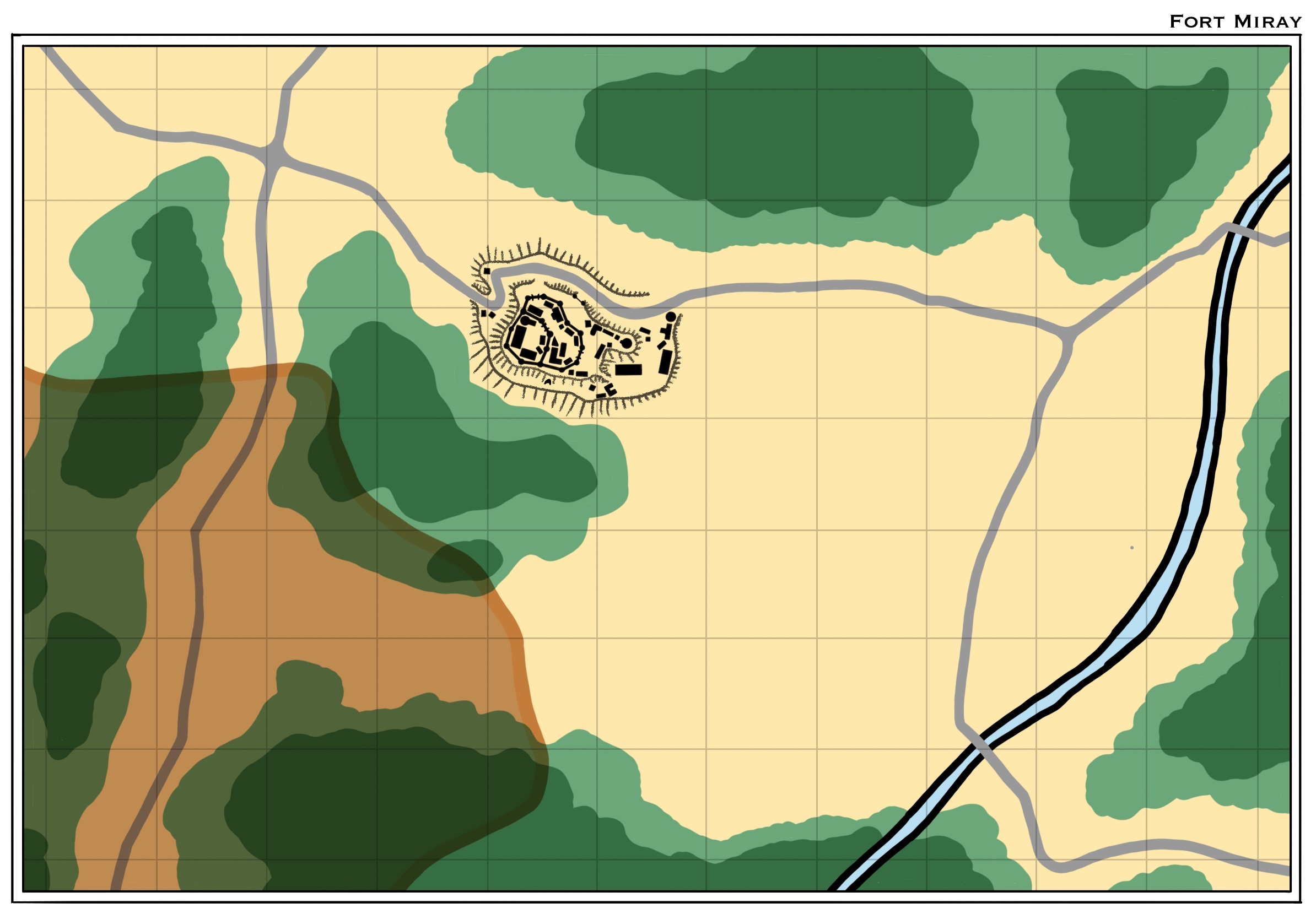 In recent years the lower hills have become useful boltholes for freedom fighters and revolutionaries fleeing The Crown’s heel. In the couple years immediately following the 15 Day War skirmishes occurred in the Eastern hills. The ensuing bombardment by Crown airships was instrumental in the later construction of the train line, since much of the blasting necessary for a North-South path had been done already.