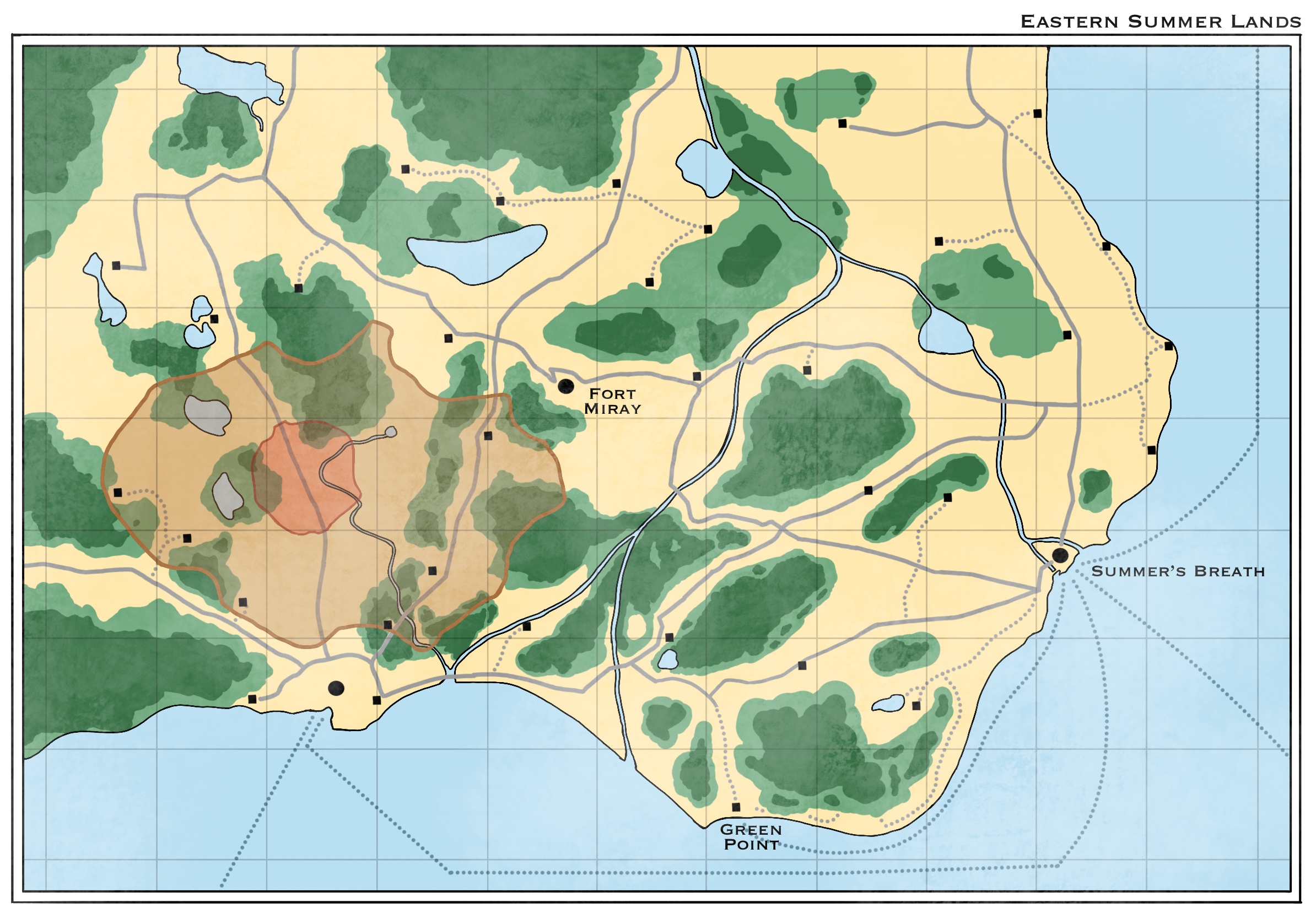 Summer’s Breath has existed, in varying sizes, for thousands of years. Its position along the Cold River continues to be a useful source of fresh water year-round, as well as allowing agricultural efforts to improve the neighboring areas.